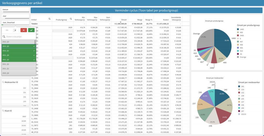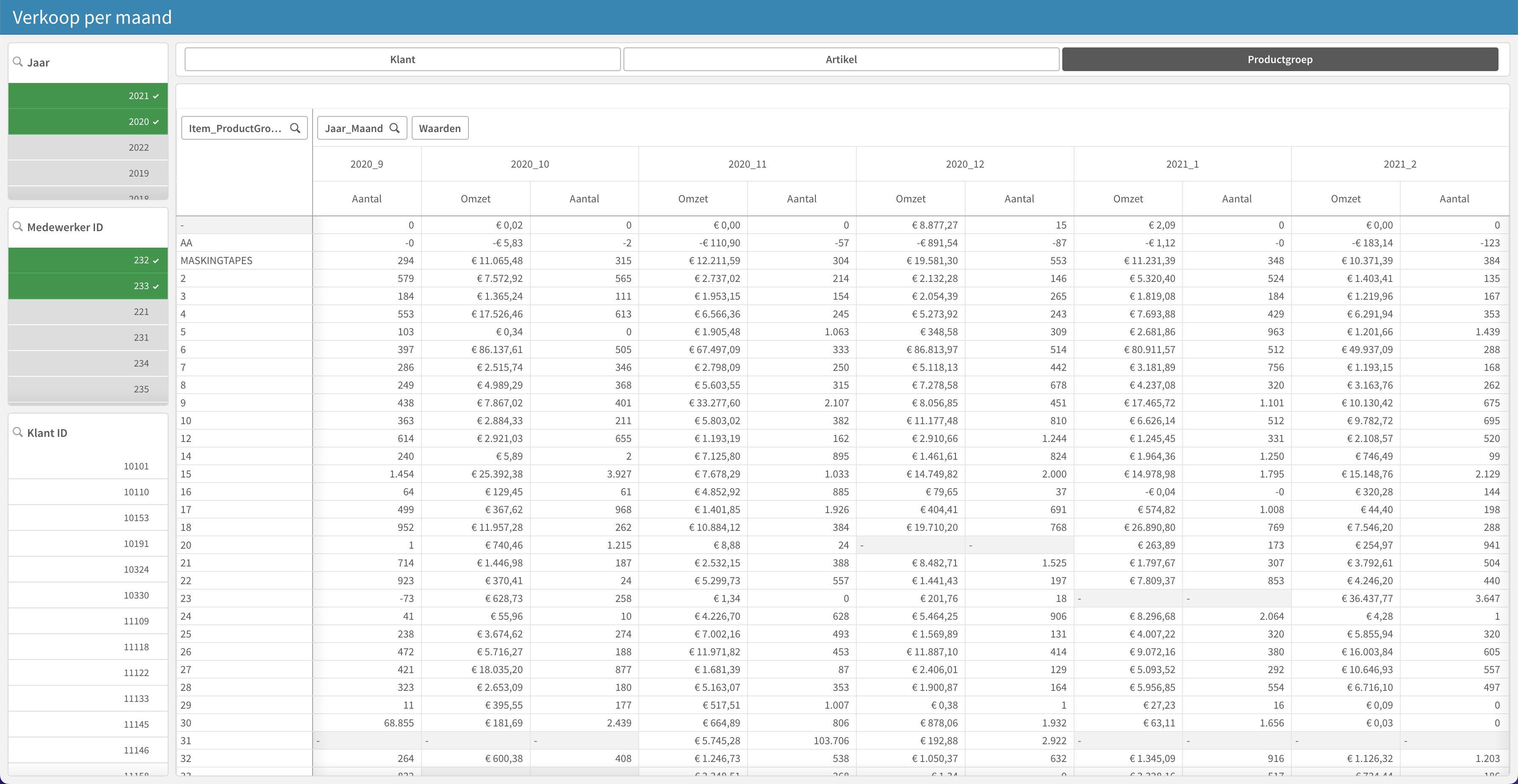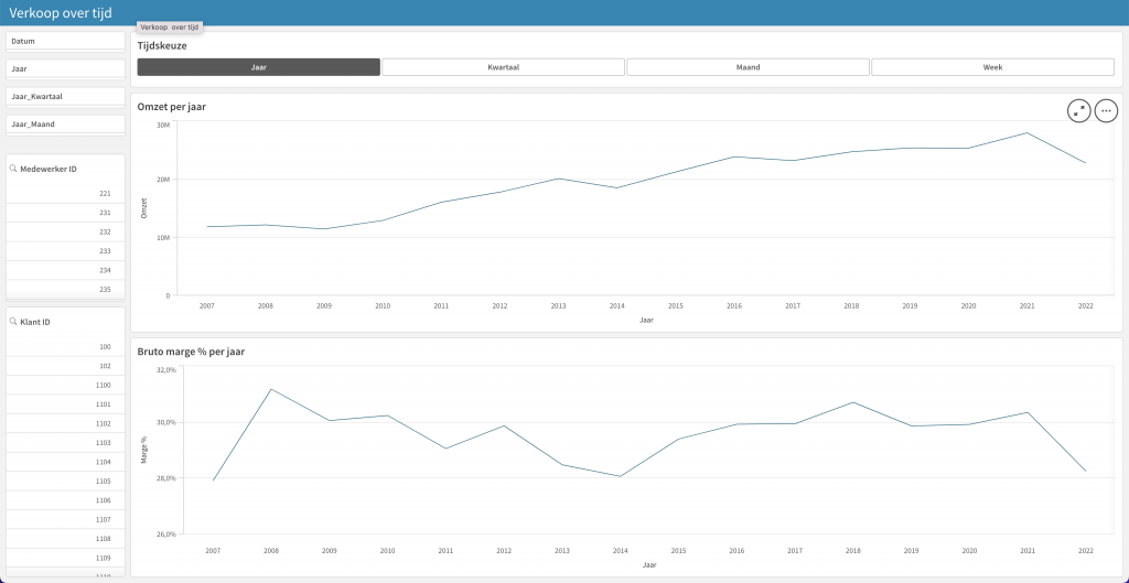 Hieronder is een project van een klant kort uitgewerkt, uitgevoerd in Qlik Sense. Ik heb hiernaast ook ervaring met het maken van dashboards in PowerBI en R Shiny.