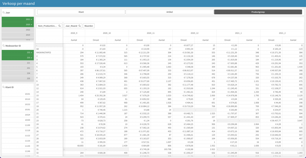 In een dashboard wordt de data van alle facetten van het bedrijf op een overzichtelijke, interactieve manier weergegeven. Deze data is altijd up-to-date. Omdat het dashboard interactief is, kun je als gebruiker eenvoudig de data weergegeven krijgen zoals jij hem op dat moment nodig hebt.